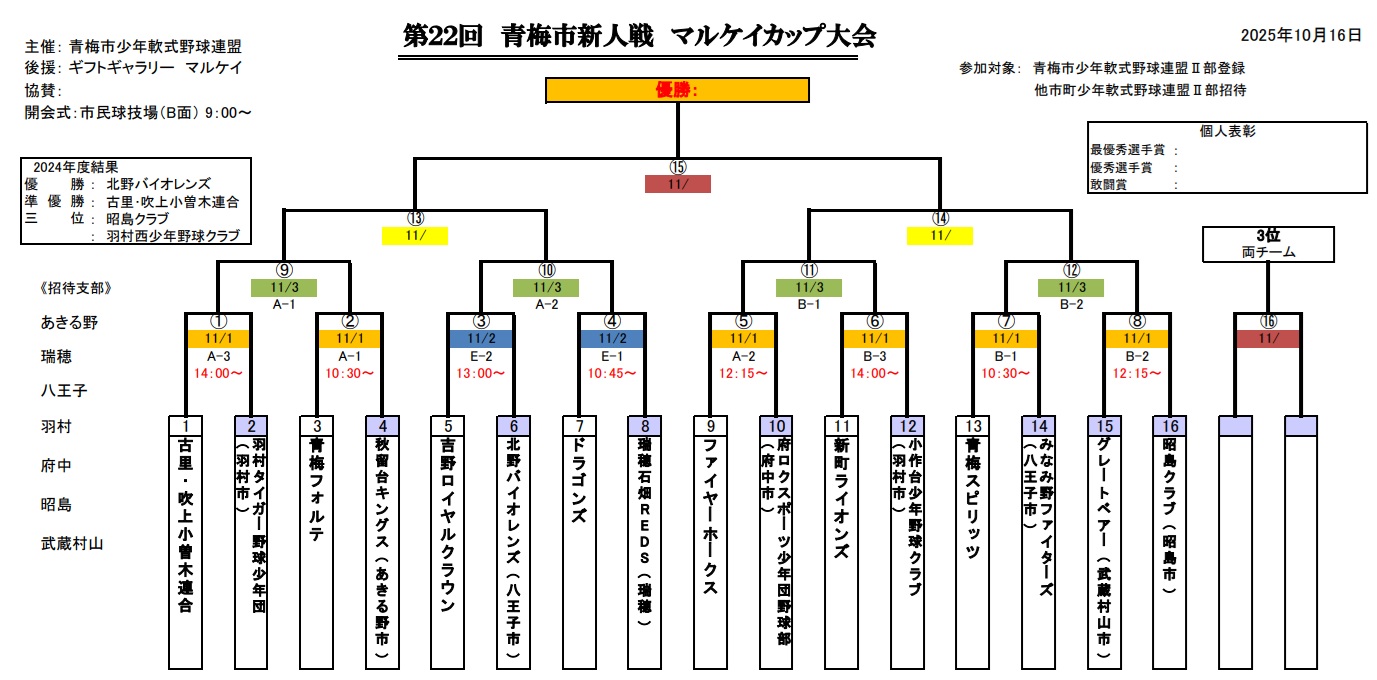2025年11月から、第22回 青梅市新人戦 マルケイカップ大会 始まります.