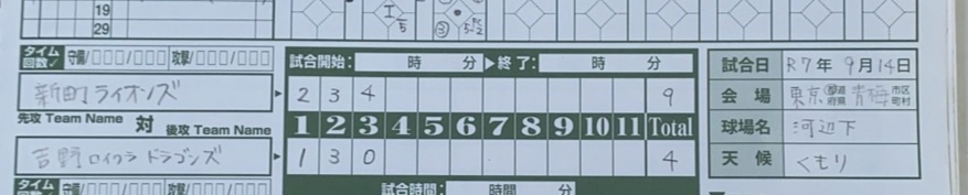 | 新町ライオンズ | 2 | 3 | 4 | 9 |